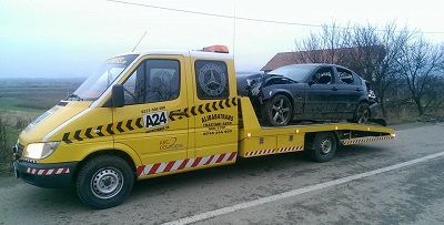 Tractare - Transport pe Platforma Autoturism Avariat dupa Accident din Cluj la Satu Mare